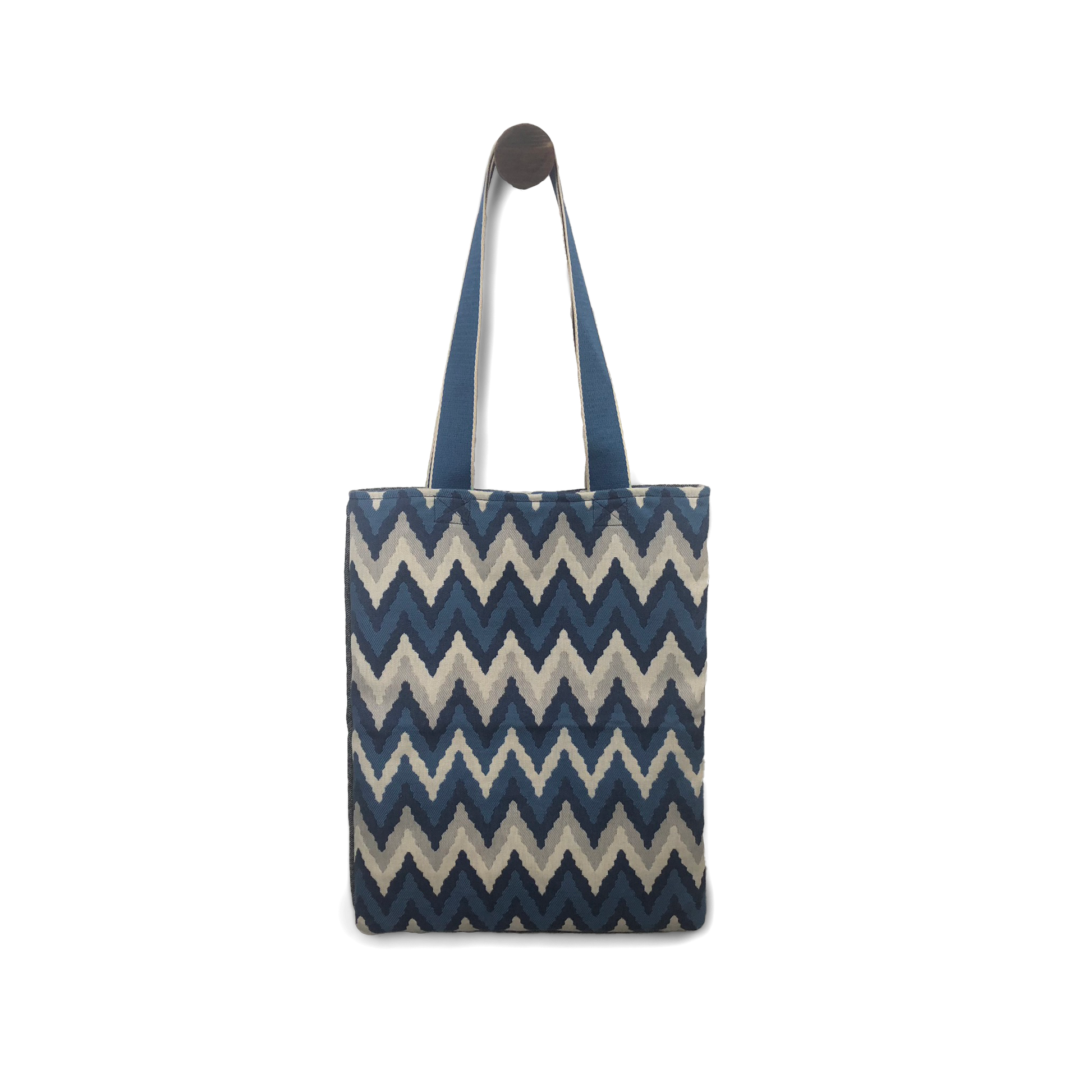 MINA Tote Bag - Blue Zig Zag/Heathered Gray