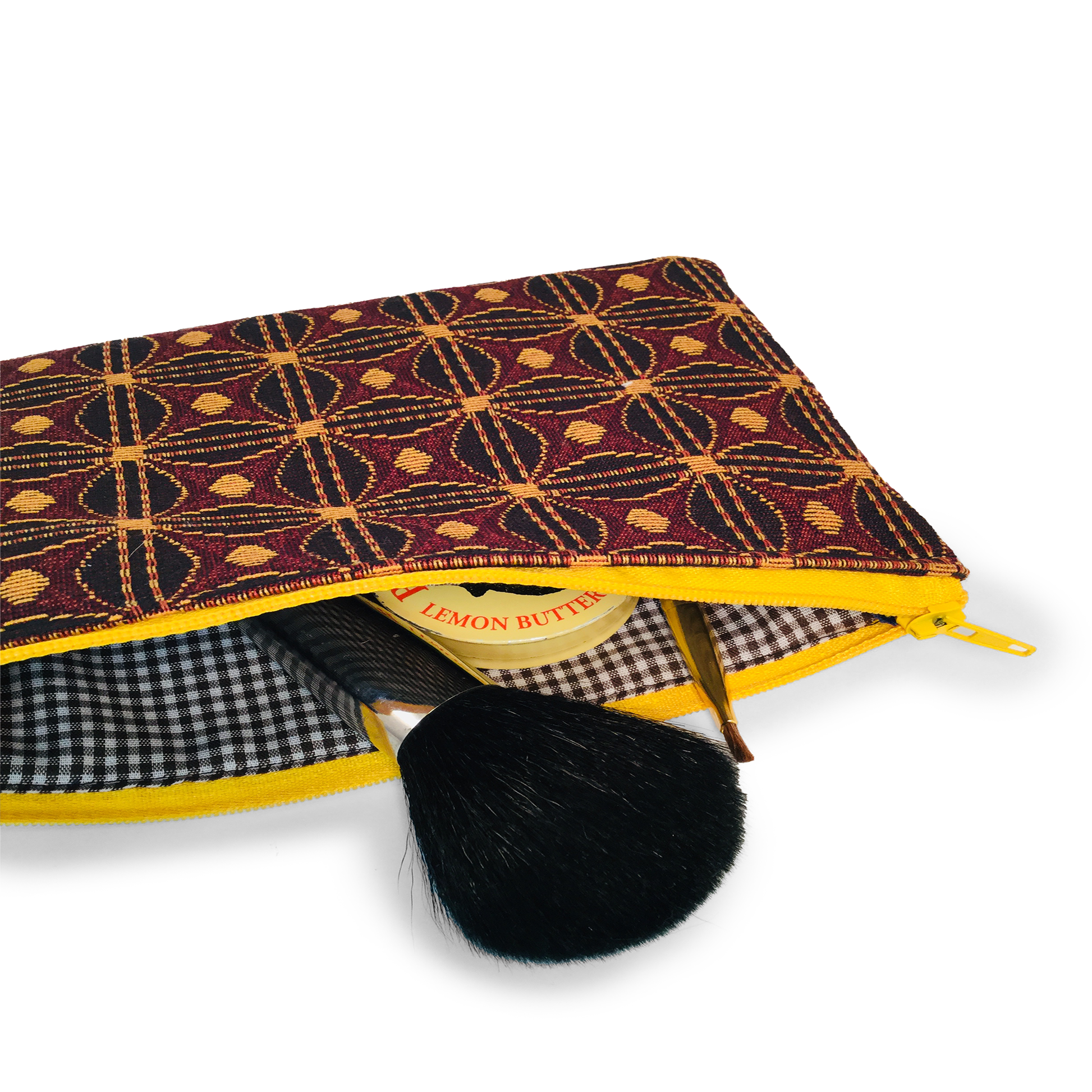 Each pouch is cut from reclaimed upholstery samples, making every piece unique. Fabric placement will vary — a small surprise built into every design.